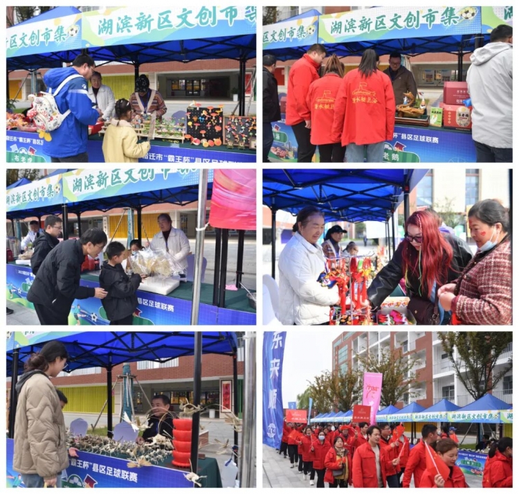 作为本场比赛的亮点之一,赛场外的湖滨新区文创市集化身为展示地方魅力的生动窗口,吸引了众多观众驻足。其内草编、玻璃工艺、泥塑、布老虎、陶艺、剪纸等精美民间工艺品让人惊叹匠人的巧思;李氏元宵、张老鹅、赵家糁汤、鱼头饺子、乾隆贡酥、骆马湖牌啤酒等本地特色美食香气四溢,让球迷们在观赛之余大饱口福。来自皂河的湖滨球迷郑峰感慨道:“能看到这么多家乡的特色文化和美食集中展示,感觉特别自豪。这已经不只是一场足球赛,更是一次湖滨风采的盛大聚会。”