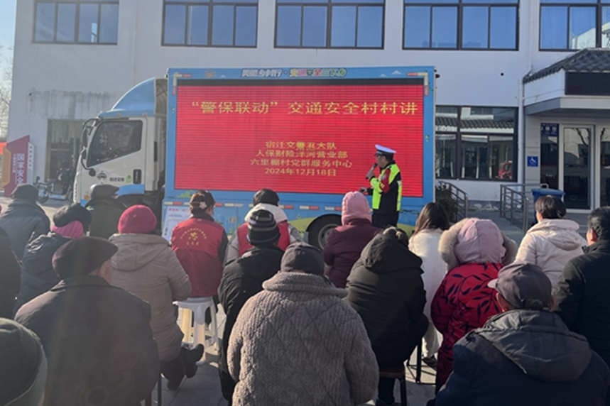 为积极营造浓厚的交通安全宣传氛围,有效提升群众的交通安全意识和文明出行意识,预防和减少道路交通事故发生,12月18日,人保财险宿迁宿城支公司联合宿迁交警五大队于洋河镇六里棚村共同开展“警保联动”交通安全村村讲,本活动已是该支公司协助交管部门开展的第六次交通安全宣讲活动。