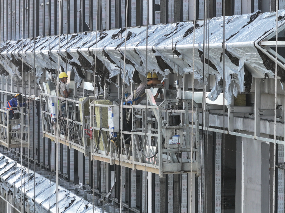 项目现场负责人表示,节日施工始终遵循“安全警钟长鸣,质量速度并进”的理念。通过制定合理的施工计划、统筹人材机调度,确保项目建设高效推进。目前,项目建筑幕墙龙骨已完成,正在进行玻璃与铝板的安装工作,室内水电管线也已全部铺设完毕,全体人员全力以赴赶工。
