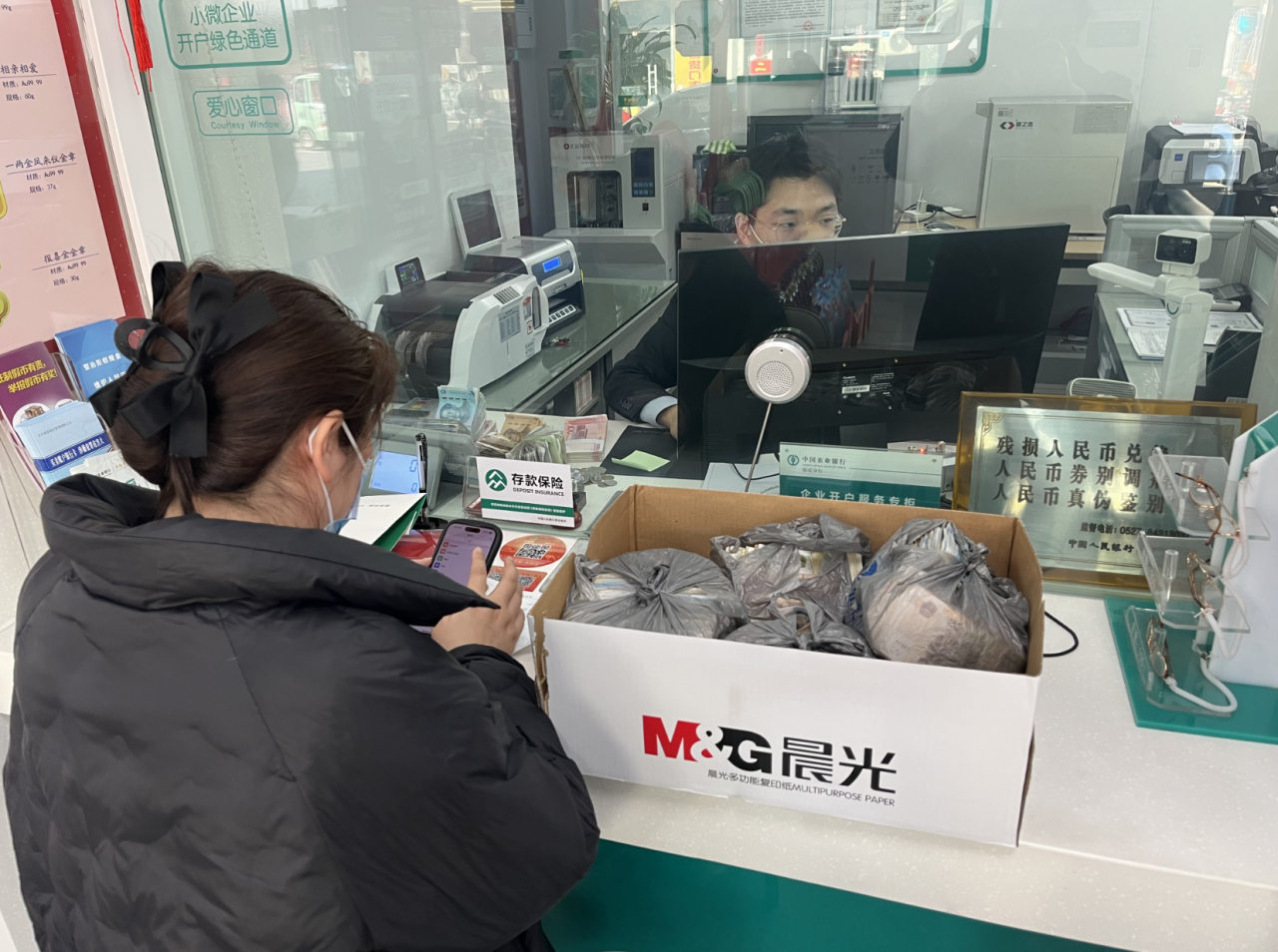 看着面额大小不一、装得满满当当的一袋零钱,网点负责人孟子恒考虑到当日为养老金发放日,安排柜面人员清点会影响老年客户办理业务,便约定第二天下午集中办理清点业务。次日下午,为了尽快完成零钱兑换工作,孟子恒对参与清点工作的员工进行分工:一部分人负责清点零钱的数量和种类,另一部分人则负责与周边经常预约兑换硬币的商户进行沟通,确保整个兑换过程的顺畅进行。在历时三个多小时的清点中,农行员工展现出了极高的专业素养和耐心,大家仔细地对每一枚硬币、每一张纸币进行清点,确保数量准确无误,最终清点零钱五万五千七百余元。同时,还耐心地解答周边商户的疑问和顾虑,兑换出1元硬币6000枚,帮助周边商户解决日常经营“找零难”的问题。