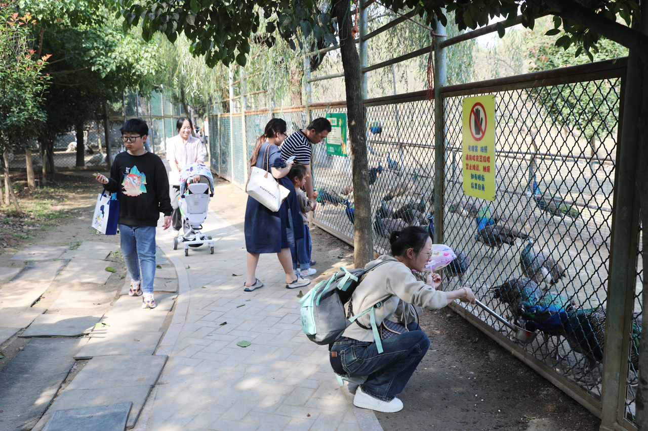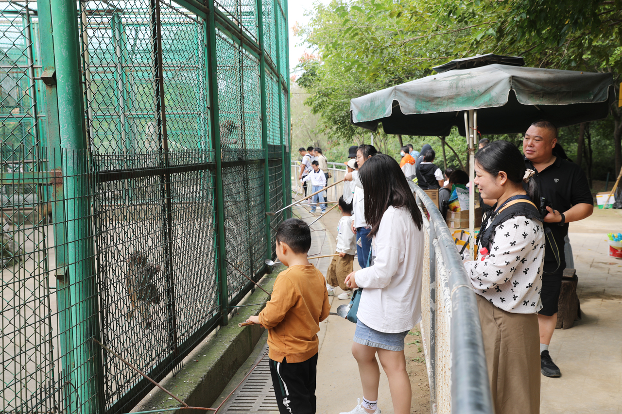 市民谭女士说:“国庆节放假,带孩子们来动物园玩玩,他们对动物不是很熟悉,我一边看一边给他们讲解,让他们认识更多的动物。孩子们对老虎、熊充满了好奇,喂孔雀、鸵鸟非常兴奋。”