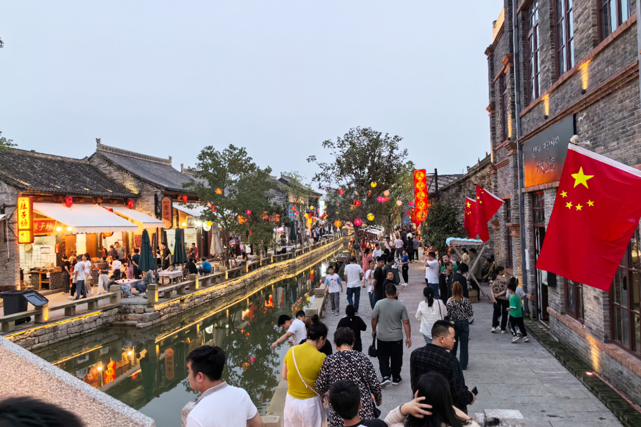 “双节”期间,袁家村·宿迁印象迎来了二期开街,景区面积增大,让游客体验感更加丰富。
