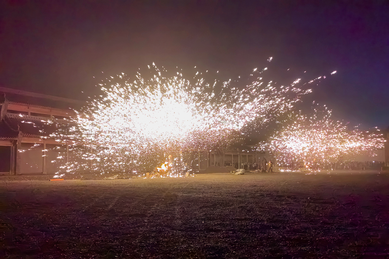每天晚上的非遗表演“打铁花”,更是成为这里的必看节目,用1600℃的铁水打出漫天缤纷的"铁花雨",在夜空中璀璨绽放 ,一幅幅壮丽的铁花美景蔚为壮观,为游客带来一场精妙绝伦的视觉盛宴。