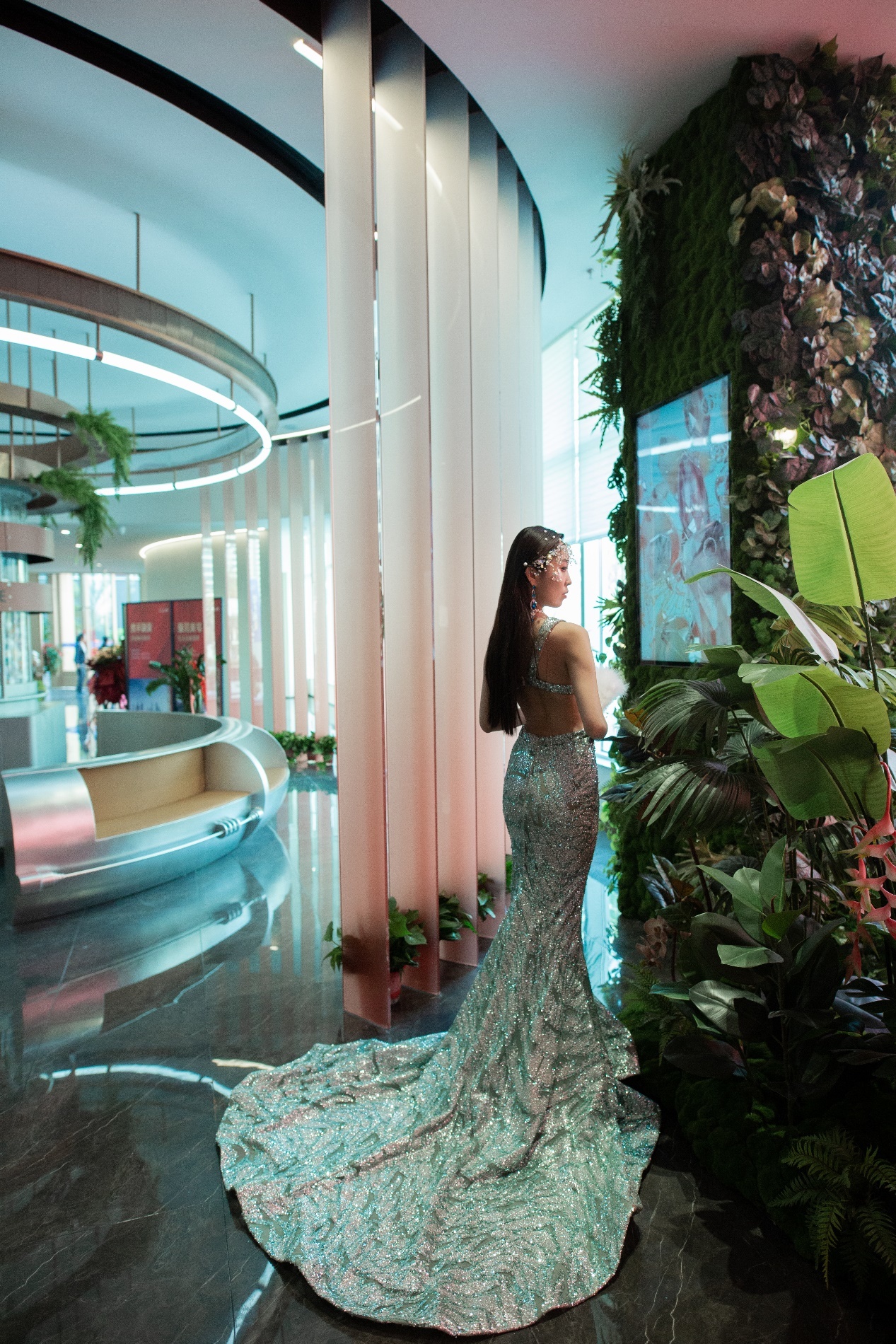 通往样板间的花艺装置《万物生长》,将山谷与森林的元素凝结,意在表达城市与自然共生的生活追求,构建视觉与感官的双重享受。每一个身影,或驻足细品,或漫步流连,都沉浸其中,提前感受江山映构建的未来美学生活,言语间表达出对高品质生活的无尽期待。