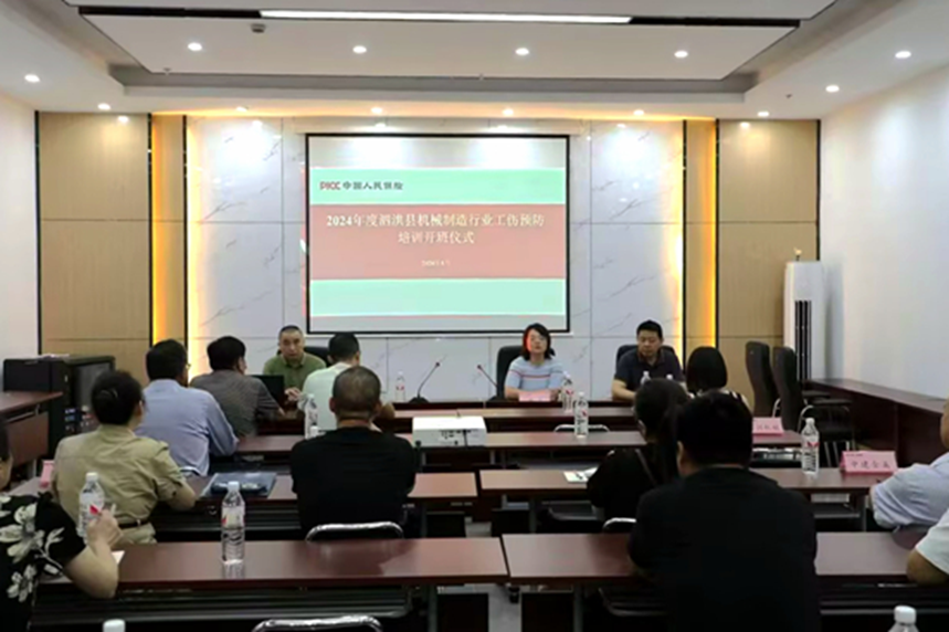 为进一步加强泗洪县机械制造行业的职业安全意识,提升工伤预防能力,近日,人保财险宿迁泗洪支公司联合泗洪县人社局共同主办的“2024年度泗洪县机械制造行业工伤预防培训”开班仪式,在县人才交流服务中心隆重举行。来自全县机械制造领域的20家企业共计46名代表积极参与。