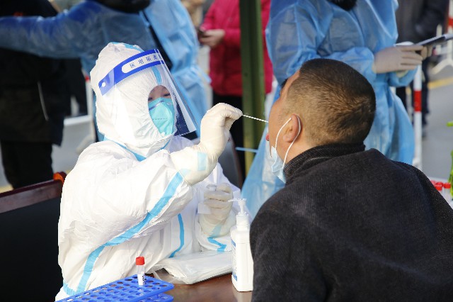 上午7点整,核酸检测抽样演练正式开始。在工作人员的指挥下,被采样居民提前准备好健康码、行程码,携带本人居民身份证、户口本,佩戴口罩,严格遵守“一米线”要求,有序进场测温、登记信息,进行咽拭子采样。