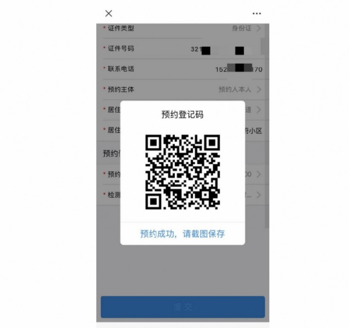 (三)确认填报信息无误后点击“提交”等待生成二维码