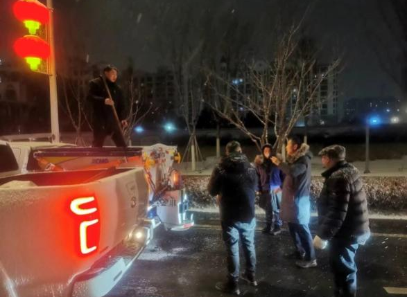 2月1日晚,园区统一部署,第一时间调配机械设备和应急物资,开启全员除雪保畅模式。按照主次干道为主、背街小巷为辅原则,采取“人工+机械”巡回作业除雪方式,清理积雪。同时,在易结冰路段加强巡查,科学合理布置除雪力量,最大限度减少降雪对道路出行的不利影响,做到“雪中路通,雪后路畅”。