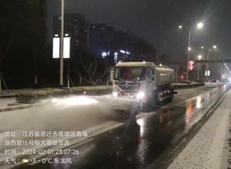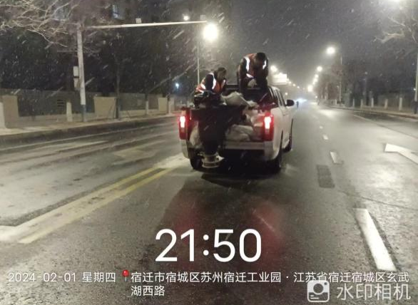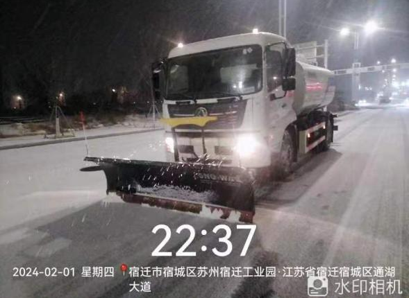 截至2月2日8时,园区累计出动人员327人,撒布机2台,除雪滚2台,雪铲2台,手推式多功能除雪车4台,使用融雪剂11吨,全力确保青海湖西路、阳澄湖路、通达大道、玄武湖西路、红海大道等主干道及各大路口车辆正常通行。