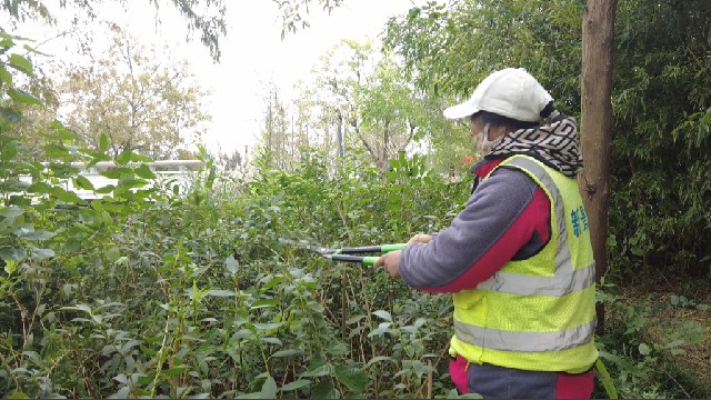 我们在核心区管养的道路面积大概是400万平方米,主要有发展大道、迎宾大道、迎春大道等各条道路,目前正在进行树木枯枝、病枝的修剪、整形,还有绿篱的杂枝、病枝修剪,草坪的除杂和修剪工作。