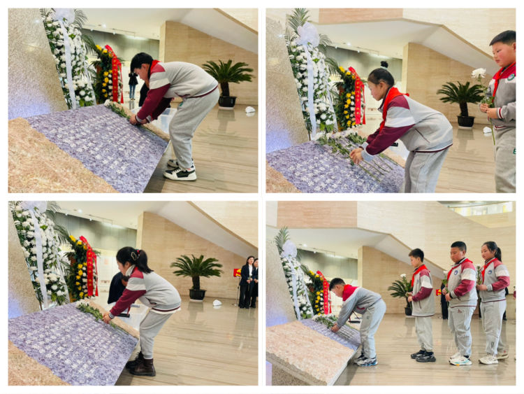 支部书记、校长任林带领全体人员缓步走向朱瑞将军雕像,依次敬献菊花,寄托无尽哀思。