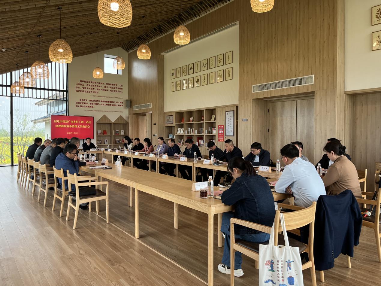 调研组先后到泗洪县明发酒店、县文化艺术中心、魏营镇、宿城区蔡集镇等地,实地调研智慧广电乡村工程、酒店电视机操作情况工作,现场指导智慧广电内容供给优化、电视操作复杂治理、广电实验室建设标准及方法等,并召开了智慧广电乡村工程工作座谈会。