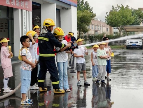 随后,消防宣传员还为小朋友们演示了原地穿战斗服、水带连接、射靶等项目。消防宣传员通过不同的消防教育设施,就如何正确疏散逃生、如何扑救初期火灾的方法进行了讲解,让小朋友们牢记消防安全知识,增强消防安全意识。