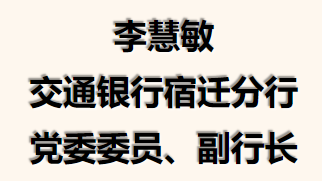 2011年1月进入交通银行宿迁分行,到2023年任职宿迁分行分管风险与授信管理部、工会团委工作的副行长,李慧敏守得初心、坚持匠心,以金融女性独有的智慧与温度,挑重担不避难,以“绕指柔”做“艰难事”,为新时代职业女性写下生动注脚。
