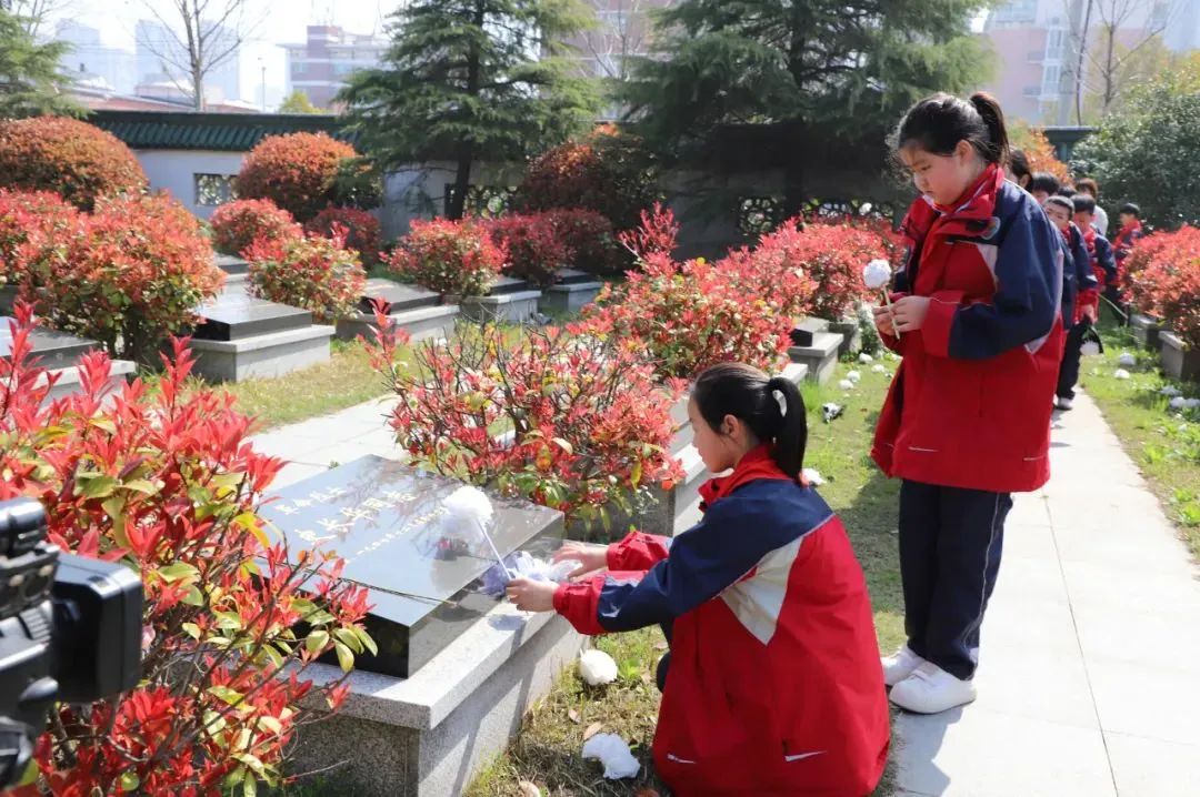 3月28日,沭阳县学府路小学组织少先队员到烈士陵园祭扫。队员们用真挚的情感高唱《中国少年先锋队队歌》,深情朗诵《烈士墓前》,讴歌英雄们的丰功伟绩和崇高精神,争做新一代社会主义接班人。
