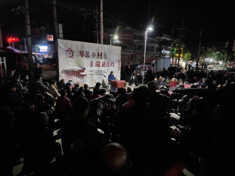 苏北琴书是苏北地区传承百年的一个民间文艺曲种,又称打蛮琴、打扬琴、打蛮船等。表演形式多种多样,常见的有传统独角戏,即一个人手拉坠子、脚底踩着独脚梆子,手脚协调联动,口中喊唱着要唱的唱词,进行独角表演;其次就是男女搭配表演的鸳鸯档,类似东北的“二人转”;再就是一人敲琴打板子喊唱,配有三弦、二胡等,三四个人配合表演。这一苏北地区的文化艺术瑰宝,植根于苏北地区广大农村,深受人民群众亲睐。每次演出锣鼓哄场后,悠扬的琴声响起,柔和悦耳的女角唱腔开场,很快就能聚集起很多观众。老年人温故着过去“听书”的美好记忆,年轻人感受着这一文艺表演形式的新奇,个个留连忘返、驻足品听。