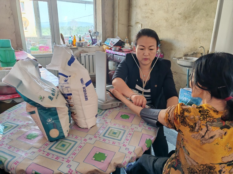 图:赵影为老人测量血压