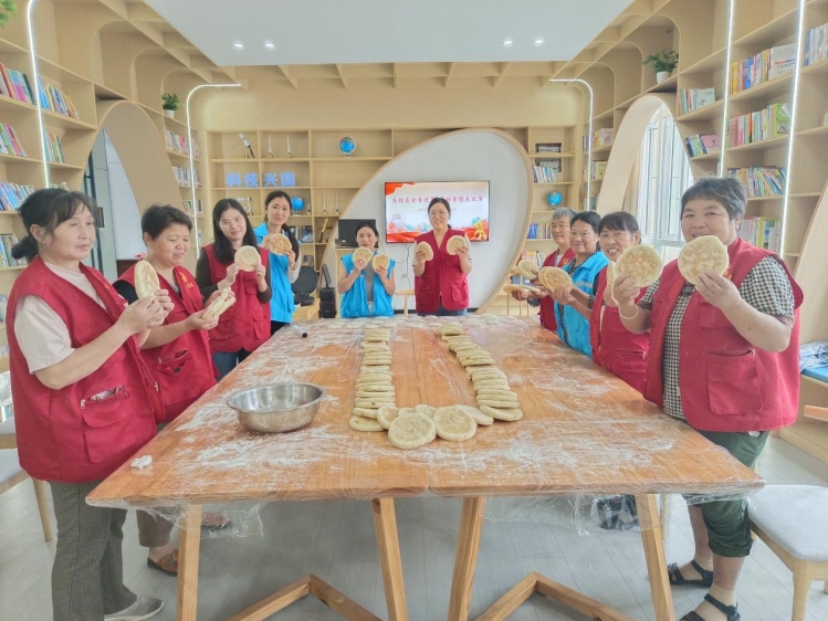 活动的压轴戏是充满甜蜜气息的“中秋包糖饼”体验。在居民王阿姨的指导下,居民们围坐一起,和面、擀皮、包馅、压模,忙得不亦乐乎。小小的糖饼,不仅包裹着香甜的馅料,也寄托着团圆的甜蜜。当一个个印有吉祥图案、金黄酥软的糖饼出炉时,满室飘香。大家品尝着自己的劳动成果,分享着节日的喜悦,“家”的温馨与“国”的庆典在这一刻完美融合。