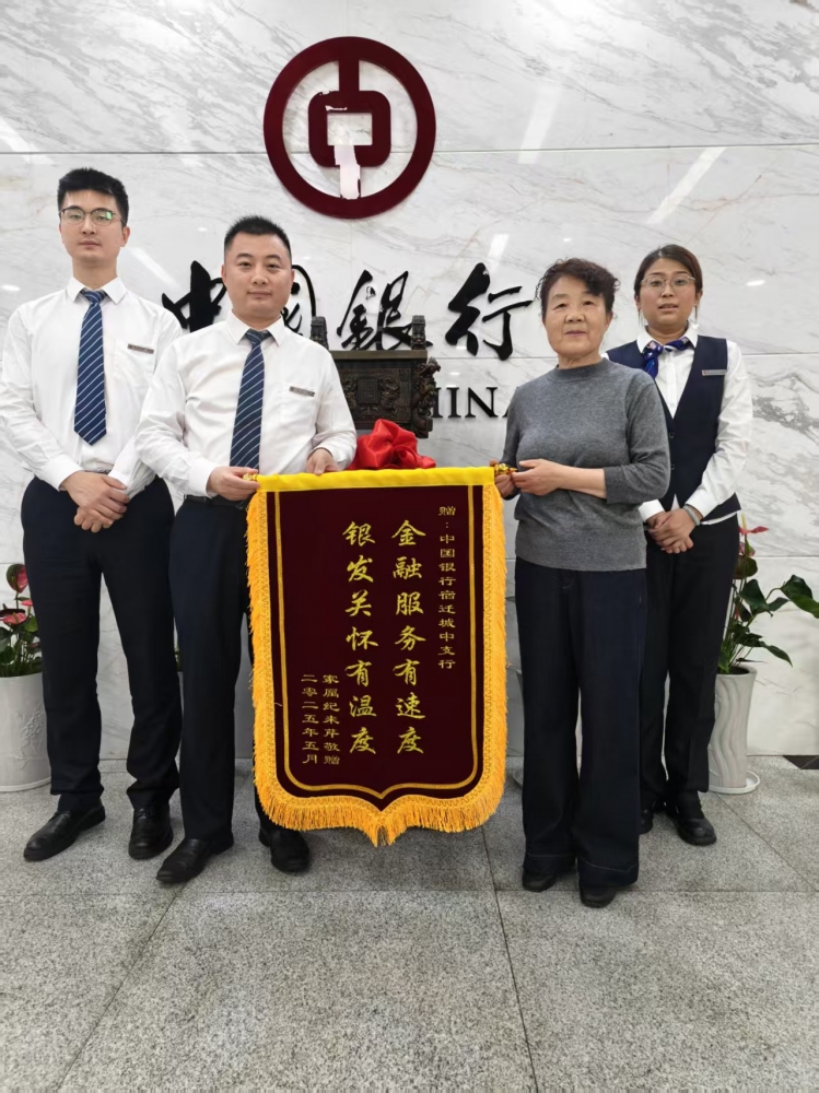 业务办理后,纪女士激动地说:“原本以为会很麻烦,没想到银行工作人员直接上门为我们解决了问题,而且整个过程都很耐心,这让我感到非常温暖!”事后,纪女士的婆婆专门委托纪女士前往银行赠送锦旗,表达感谢。