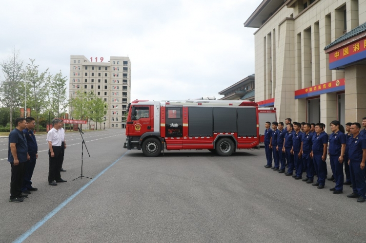 区消防救援大队大队长岳龙代表全体指战员,对秦川一行表示热烈欢迎,对党工委、管委会的亲切慰问表示衷心感谢。表示在今后的工作中,大队将始终发扬“对党忠诚、纪律严明、赴汤蹈火、竭诚为民”的优良传统和过硬作风,不断增强队伍战斗力,全面提高防灾减灾救灾和安全生产保障水平,为新区经济社会高质量发展和人民安居乐业保驾护航。