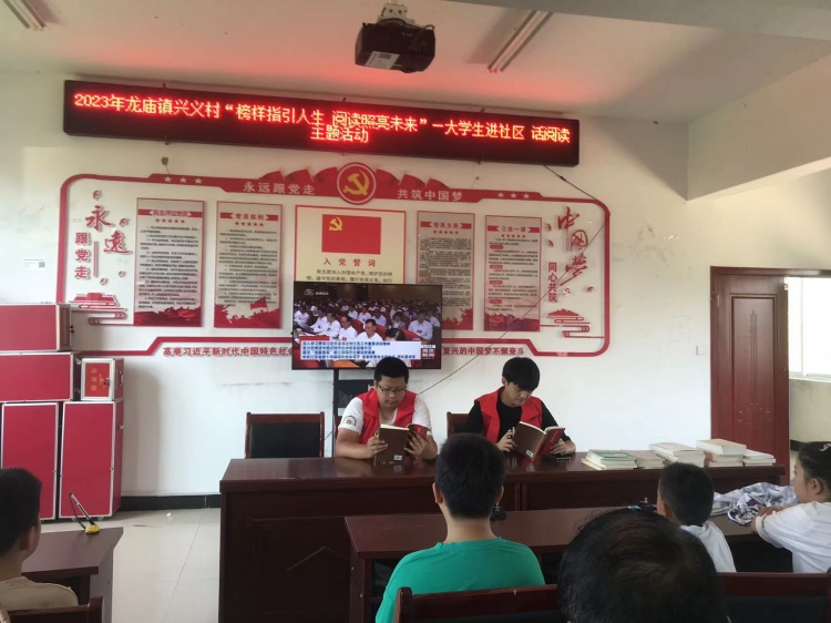 为进一步培育全民阅读良好新风尚,发挥大学生、准大学生阅读榜样作用,丰富他们的暑假生活。2023年8月20日下午3点,龙庙镇兴义村开展“榜样指引人生 阅读照亮未来”—大学生进村(社区)话阅读主题志愿活动。
