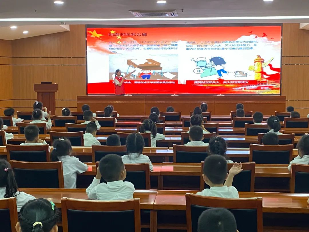 除了开展体验场馆内防灾减灾项目,园区安监局(市场监管局)党支部同步开放了防灾减灾知识科普小课堂,课堂上老师精心准备了充满童趣的图片、视频和课件,通过通俗易懂的语言、简单有趣的动作示范等形式,详细普及了地震、火灾、台风、低温雨雪等各种灾害风险防范知识以及各类报警音的正确识别方式。