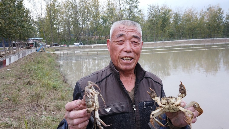 背靠大运河的天然水系,今年承包80亩蟹塘的魏其复也是每天忙个不停,看着螃蟹四处爬窜,蟹塘浑浊,老魏心里很高兴。