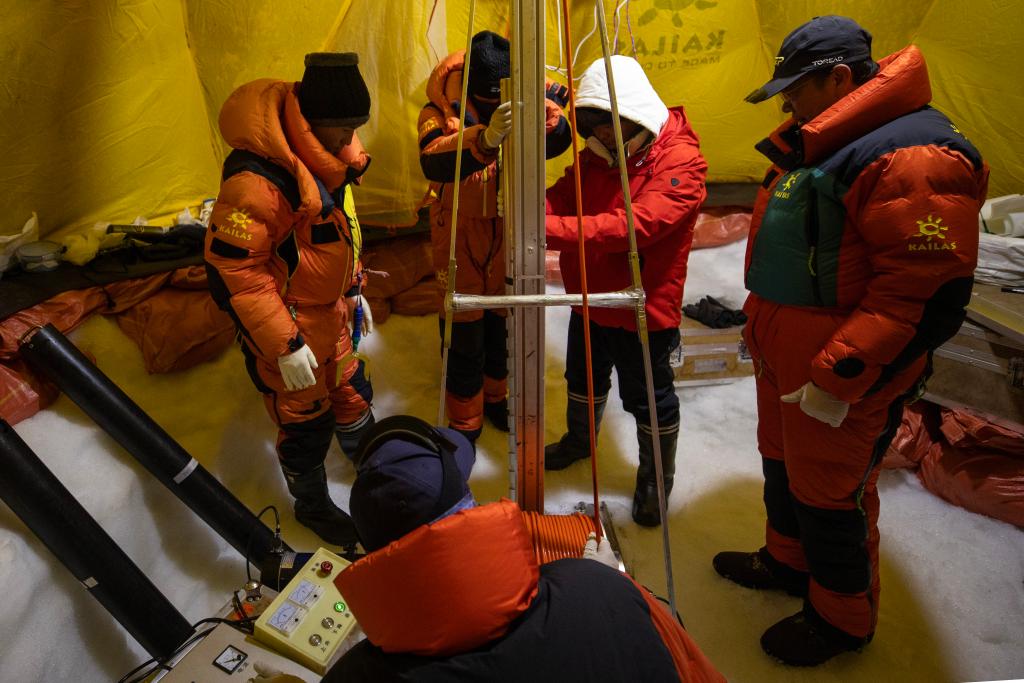 科学家介绍,冰川一旦融化,其封存的地球历史记录也将消失,因此钻取、保存冰芯尤为重要。