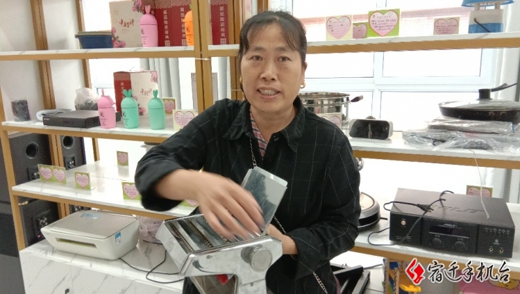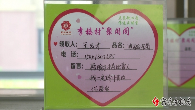 在党群服务中心二楼“聚闲阁”党群服务超市,记者看到,屋内货架上摆满了热水瓶、板凳、台灯、电扇、电磁炉等物品,每一件爱心物资的旁边都放着一张卡片,上面写着物品品名以及捐献者(或领取人)的姓名、电话和祝福语等。在一个电饭锅旁,记者留意到,卡片上写着“幸福的味道从煲好米饭开始,甜在嘴,暖在心!”。而旁边还放着一张领取人的留言“感谢捐赠人,我一定珍惜这份厚爱。”一送一收,倍感温暖。村民贺蔼梅喜爱做面食,在二楼转了一圈后,淘到了一个宝贝。
