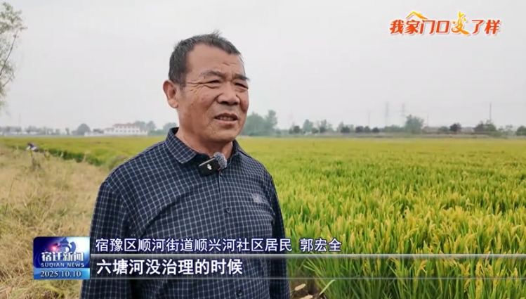 “六塘河没治理的时候,这土地栽不上水稻,也就是上不上水,六塘河治理以后,造了节制闸,旱了能灌,涝了能排。”宿豫区顺河街道顺兴河社区居民郭宏全说。
