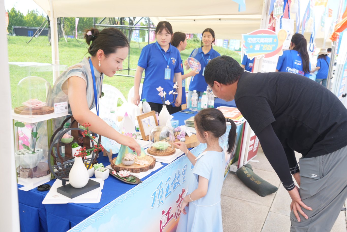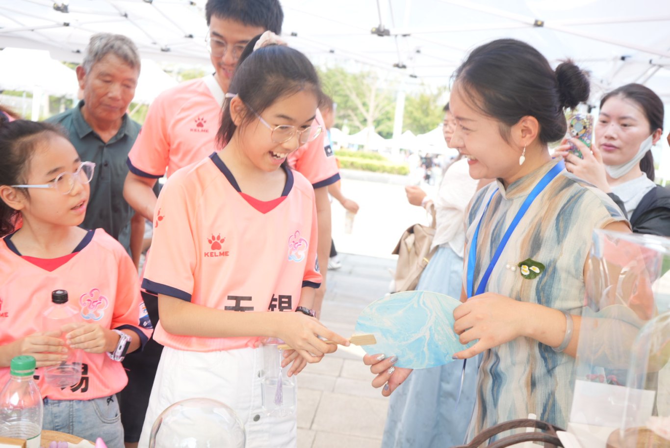 在市集现场,时光印幼儿园的展位吸引了众多热情的球迷和市民驻足。作为幼儿园的代表和非遗文化的践行者,老师们化身为“童心信使”和“非遗讲解员”,深情并茂地向大家展示着孩子们制作的冷瓷作品。