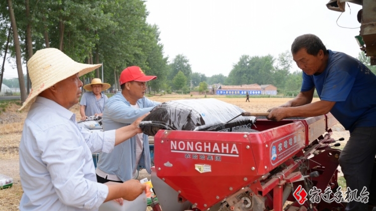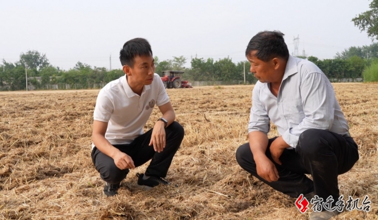 在郑楼居委会郑西组一处麦茬地里,伴随着隆隆机声,一辆种肥一体化精量播种机在农机手熟练操控下来回作业,旋耕、播种、覆土、镇压一次完成,平均1小时就能种完10亩地。为了帮助农户科学种植,宿迁市农科院技术专家赖上坤博士也来到现场进行指导。