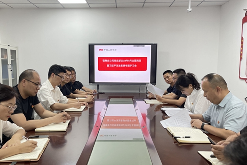 9月20日下午,人保财险宿迁宿豫支公司党支部组织全体党员开展2024年9月主题党日暨习近平法治思想专题学习会。