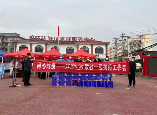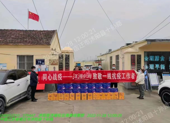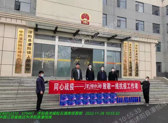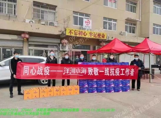 11月28日上午,名酒苏北事业部名酒沭阳办事处与洋河小海经销商胡总带领团队,来到沭阳庙头社区党群服务中心、十字施圩社区、潼阳镇人民政府、七雄官田社区。将方便面、油等生活物资送到抗击疫情一线工作人员手中,献上企业的一片爱心,感谢他们在人民需要的关键时刻,义无反顾投身到疫情防控工作中,向坚守在抗疫一线工作人员表示慰问。社区疫情防控点的工作人员表示“感谢爱心企业的关爱,疫情面前大家团结一致、共抗疫情,一定能打赢这场防控新冠肺炎的狙击战。”