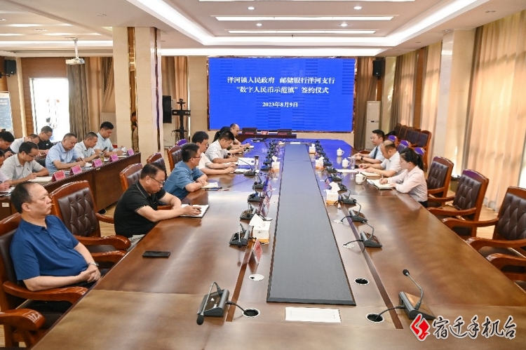 8月9日,洋河镇人民政府与邮储银行洋河支行举行“数字人民币示范镇”合作签约仪式,双方共同商定建立全面、长期和稳定的合作关系,全力推动数字经济发展,合力建设数币经济小镇,共同推动洋河镇数字经济新实践。洋河新区党工委委员、洋河镇党委副书记、人大主席张克喜,邮储银行宿迁分行副行长岳刚出席签约仪式。