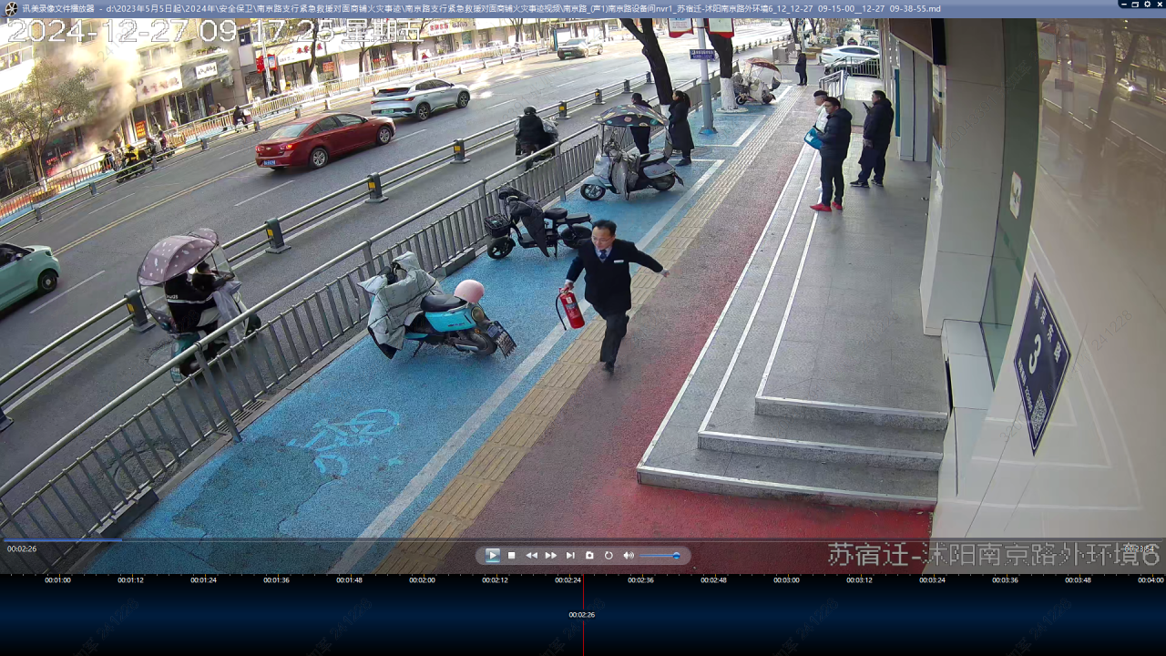 在发现火情第一时间,沭阳南京路支行大堂经理宋波迅速提起网点灭火器,飞身冲向街对面的商铺开展灭火工作。与此同时,网点内勤行长徐宝远拨打了“119”火警电话,与新入行员工林泽宇一起赶往商铺救援,疏散周围群众,以免发生燃爆危害人身安全。由于火势太大,商铺周边的商户灭火器不够用,3名员工只能三次往返网点取用灭火器,最终在使用完8个灭火器,十多分钟的奋战后,有效在消防车到达前基本熄灭火源。沭阳县消防大队、辖区民警随后赶到现场,一起进行勘察,对农行员工应急处置初期火灾给予了高度评价。3名员工在确认无明火隐患后,默默离开现场返回网点,继续投入到日常工作中。