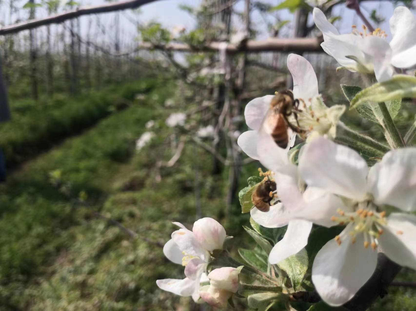 眼下,苹果已经大面积进入盛花期,而苹果授粉的黄金时间只有短短的10-12天。为了抢抓时间授粉,早在花期到来之前,果园就开始多方积极联络周边地区的蜂农,以准确控制放蜂授粉采蜜时间,达到增产增质增效的作用。