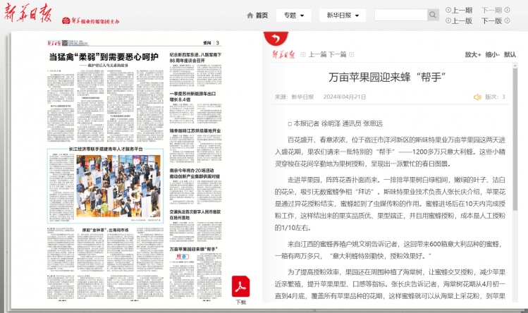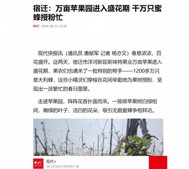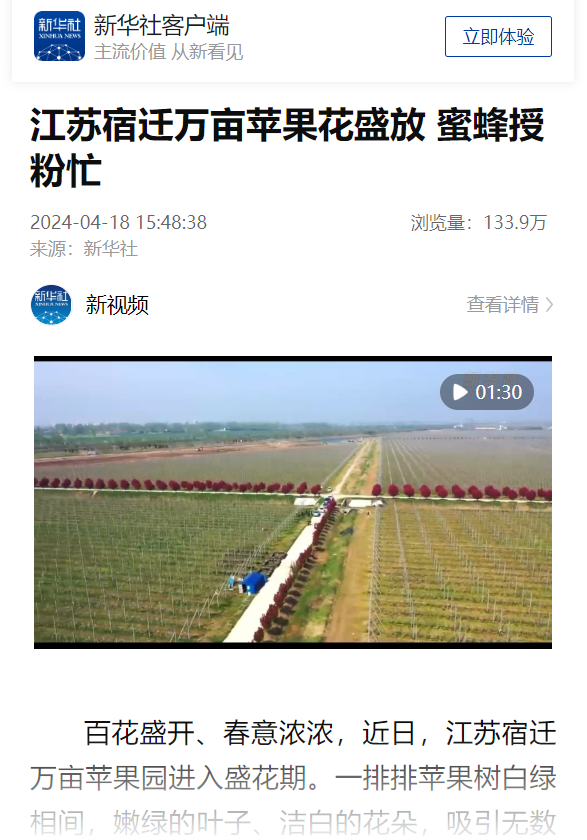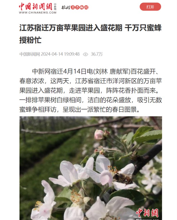 《宿迁万亩苹果园迎来一批特别“帮手”——逾1200万只蜜蜂授粉添香》