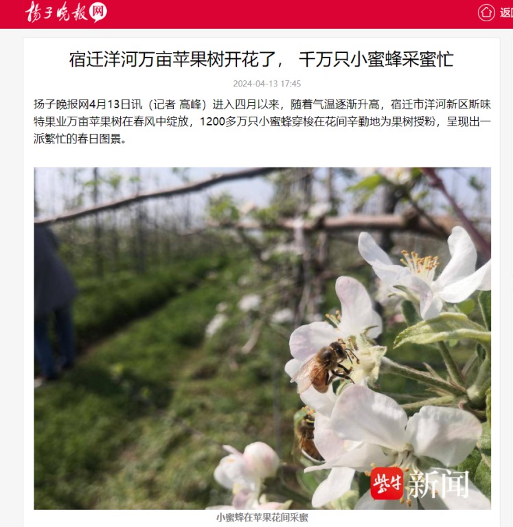 宿迁万亩苹果园迎来一批特别“帮手” —— 逾1200万只蜜蜂授粉添香