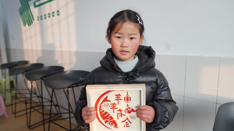 听完故事,孩子们便迫不及待地跟随老师学习制作新年非遗手工礼物《竹编画》。大家首先拿起相框,在背景板右侧贴上一排双面胶,然后把竹条从上往下依次粘贴牢固。同时,把剩下的竹条纵向编织在竹面上进行固定。大约10多分钟,幸福的时刻来了,一张张镂空图案叠放在刚编好的竹面背景板上,嵌入相框后,《年年有余》《“柿柿”如意》《龙腾虎跃》等一幅幅漂亮的竹编画便瞬间呈现眼前。大家争着展示自己的作品,让人应接不暇。