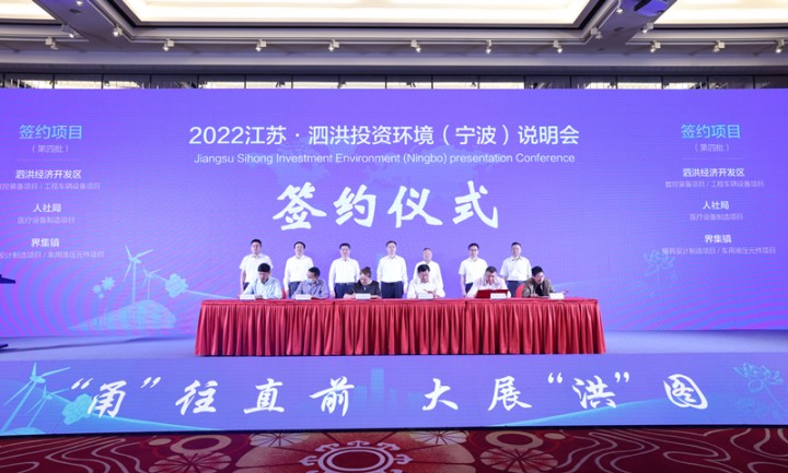 5月25日,2022江苏泗洪投资环境(宁波)说明会在浙江省宁波市成功举办,现场共签约项目17个,计划总投资122.5亿元。县委书记杨云峰出席说明会并致辞。 杨云峰表示,泗洪将一如既往地营造最佳的氛围、创造最优的环境、提供最好的服务、给予最大的支持,为各位企业家朋友提供更加广阔的发展空间。