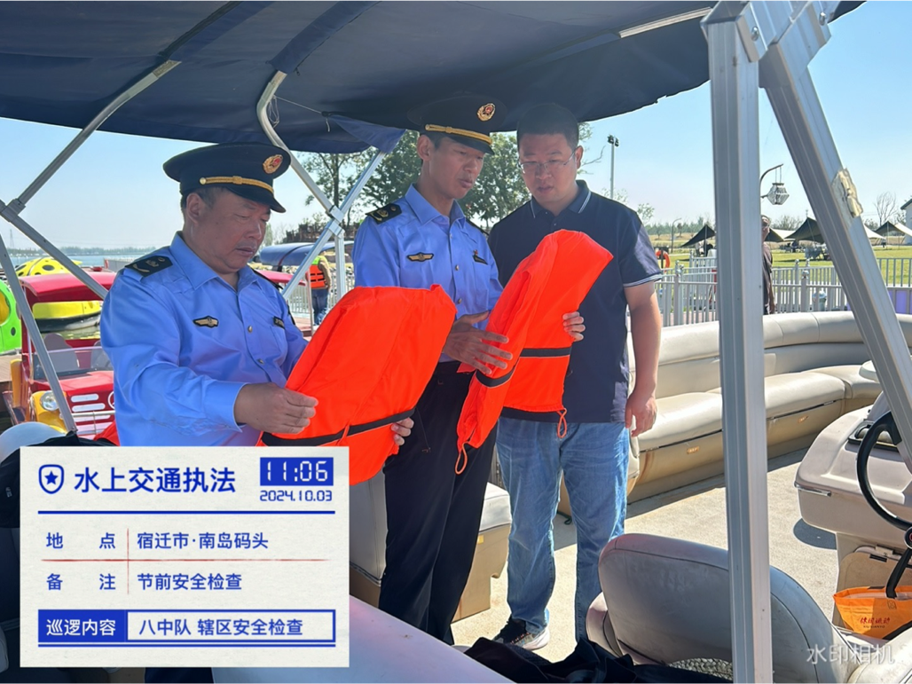 国庆假期,宿迁市交通运输综合行政执法支队严格落实上级各项部署,紧绷水上监管安全弦,强化水上游览隐患检查整改、现场执法服务、预警防范、应急处置,全力筑牢水上交通安全防线,保障游客水上游览安全。