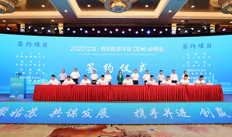 8月29日,2022江苏·泗洪投资环境(苏州)说明会在苏州成功举办。会上共签约8个项目,计划总投资82.6亿元。县委副书记、县长耿晓云出席会议并致辞。