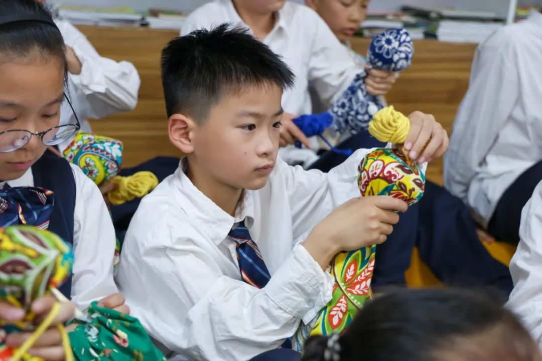 而最令孩子们兴奋不已的,当属动手制作艾草锤环节。在医务人员的悉心指导下,孩子们把艾草包小心翼翼地用布料包裹,再用绳子层层缠绕,努力制作出一个个结实又实用的艾草锤。他们兴致勃勃地投入到实践中,不一会儿,一个个充满童趣与创意的艾草锤在孩子们的巧手下成型,孩子们脸上洋溢着自豪与满足的笑容,在亲手制作的过程中,真切地感受到了传统技艺的独特魅力,也对中医药文化有了更深刻的认识与体验。