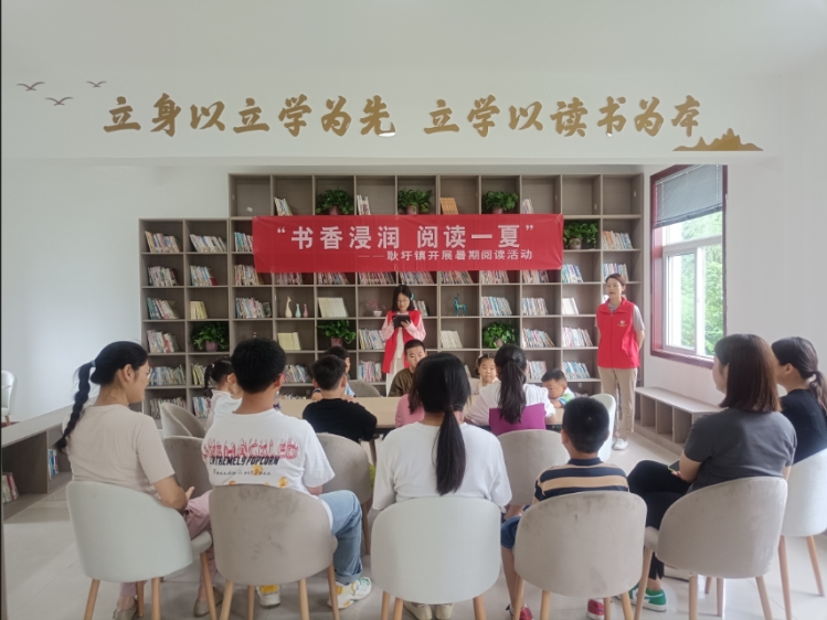 7月26日上午,耿圩镇新时代文明实践所里书香阵阵,这里正在举办“书香浸润,阅读一夏”主题活动,新时代文明实践志愿者们带领孩子们一起畅游书海,共同探索未知的奥秘。