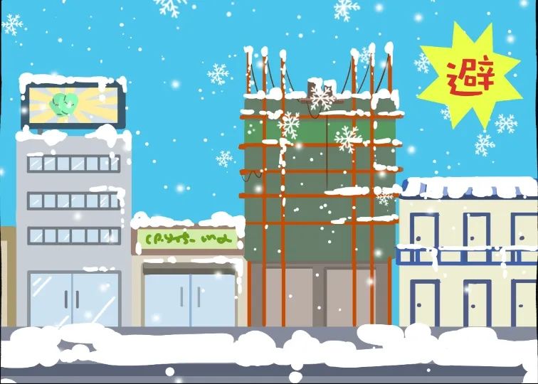 积雪积冰过多导致老化损坏的户外广告牌、临时