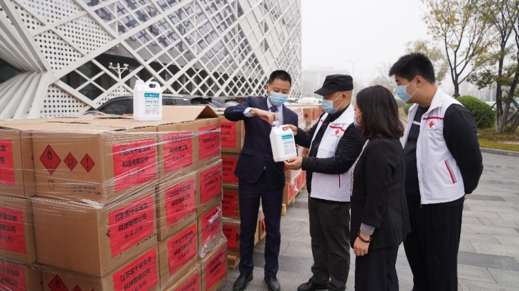 “500毫升喷雾消毒液4000瓶,2500毫升桶装消毒液3200桶。”11月10日上午,江苏实干家生物科技有限公司向洋河新区红十字会捐赠总价值约26万元的防疫物资,为疫情防控贡献力量。