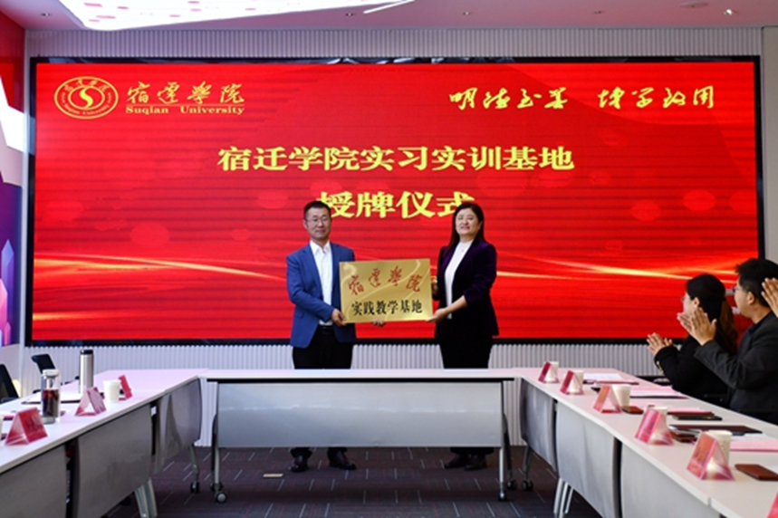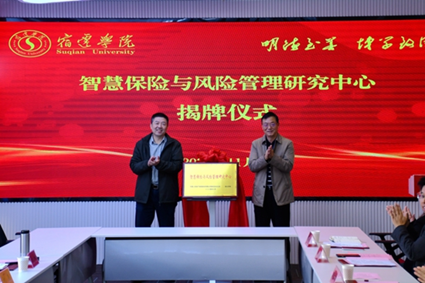 座谈会后,宿迁学院经济管理学院与宿迁公司共同举办了“智慧保险与风险管理研究中心”“实习实训基地”揭授牌仪式。