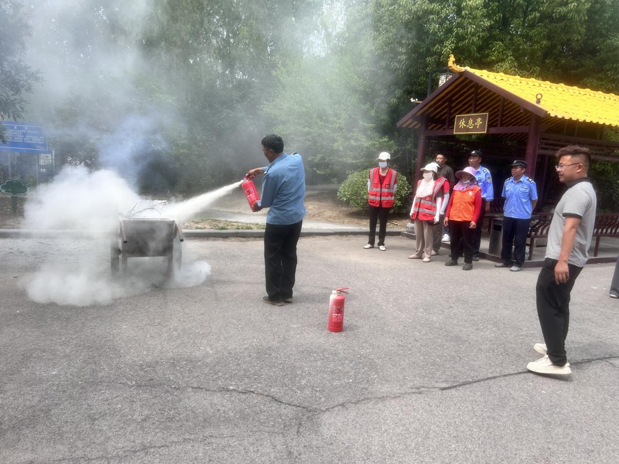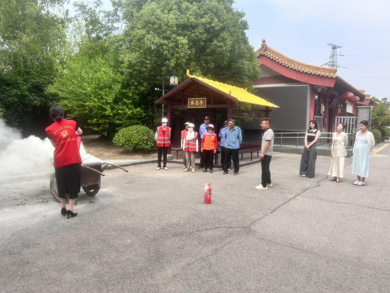 7月18日下午,泗阳县妈祖文化园举行第三季度安全生产会议和消防演练活动,现场学习了消防器材使用常识,并就火灾防范和隐患排查,讲解了相关注意事项。