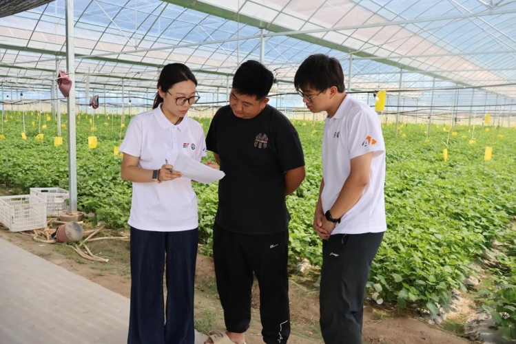 图为实践队员与技术人员针对康颐果蔬种植专业合作社“销路不稳定”难题进行探讨。李惠琳 供图
